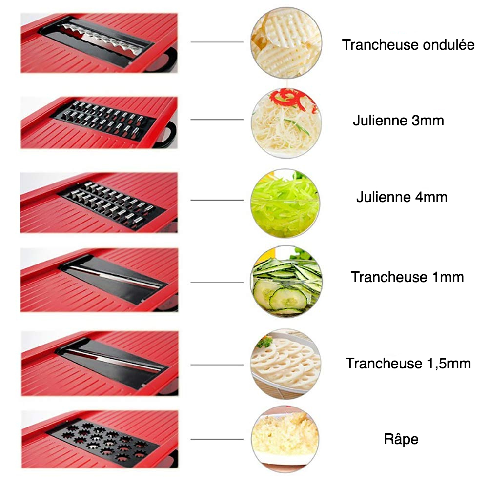 Notre mandoline avec protège-mains est l’outil ultime pour une découpe parfaite et en toute sécurité. Grâce à son design ergonomique et son protège-mains intégré, vous pouvez trancher, râper et émincer vos fruits et légumes en toute confiance.