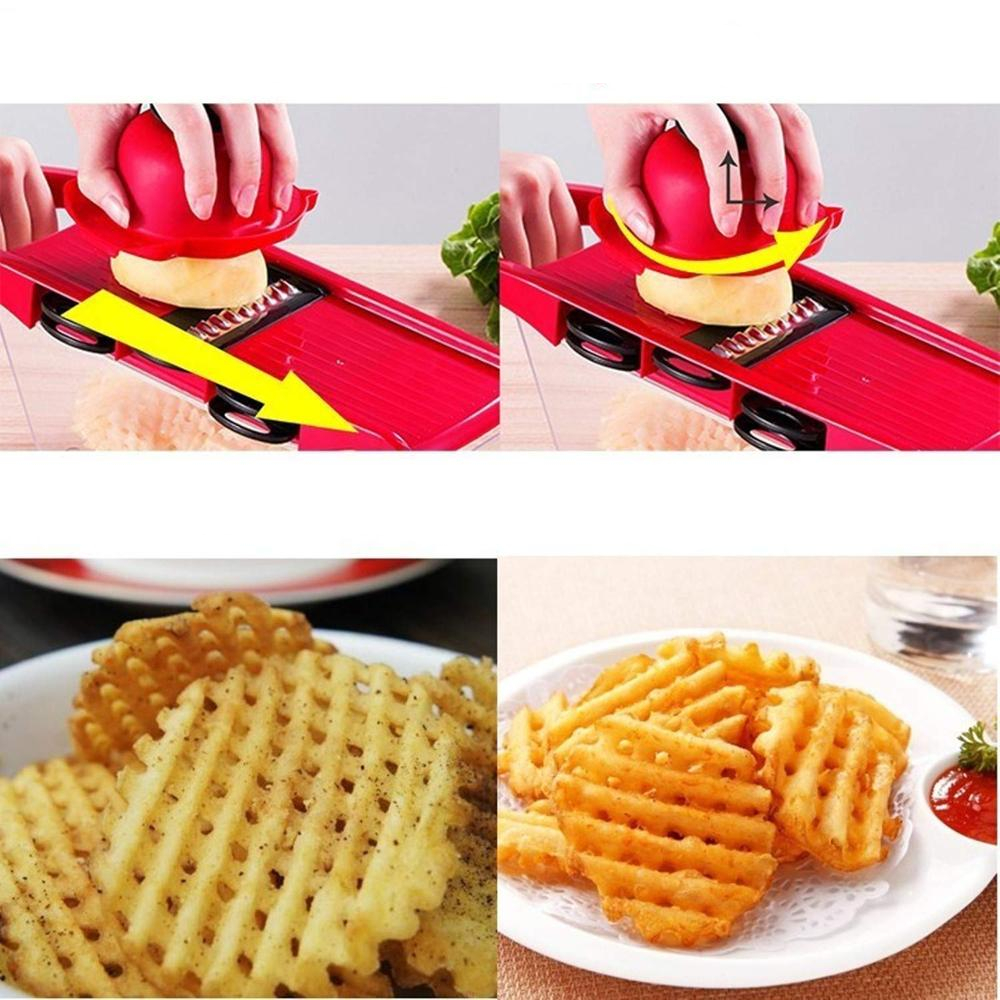 Une mandoline, c’est un objet utile pour beaucoup de gens, mais qui peut devenir dangereux à cause des lames tranchantes. Saisissez la mandoline avec le protège-mains et coupez vos légumes en toute sécurité.