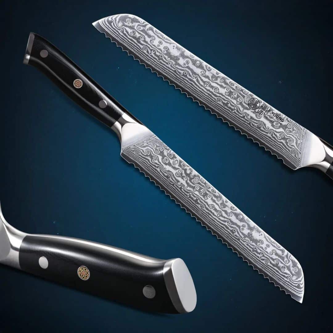 Ce couteau à pain en acier de Damas est un atout indispensable en cuisine. Il offre une coupe précise et nette, préservant la texture des pains. Sa lame durable et sa résistance à la corrosion garantissent une performance de longue durée, tandis que sa manche ergonomique assure un confort optimal lors de l’utilisation. Il assure un look prestigieux et original à votre cuisine.