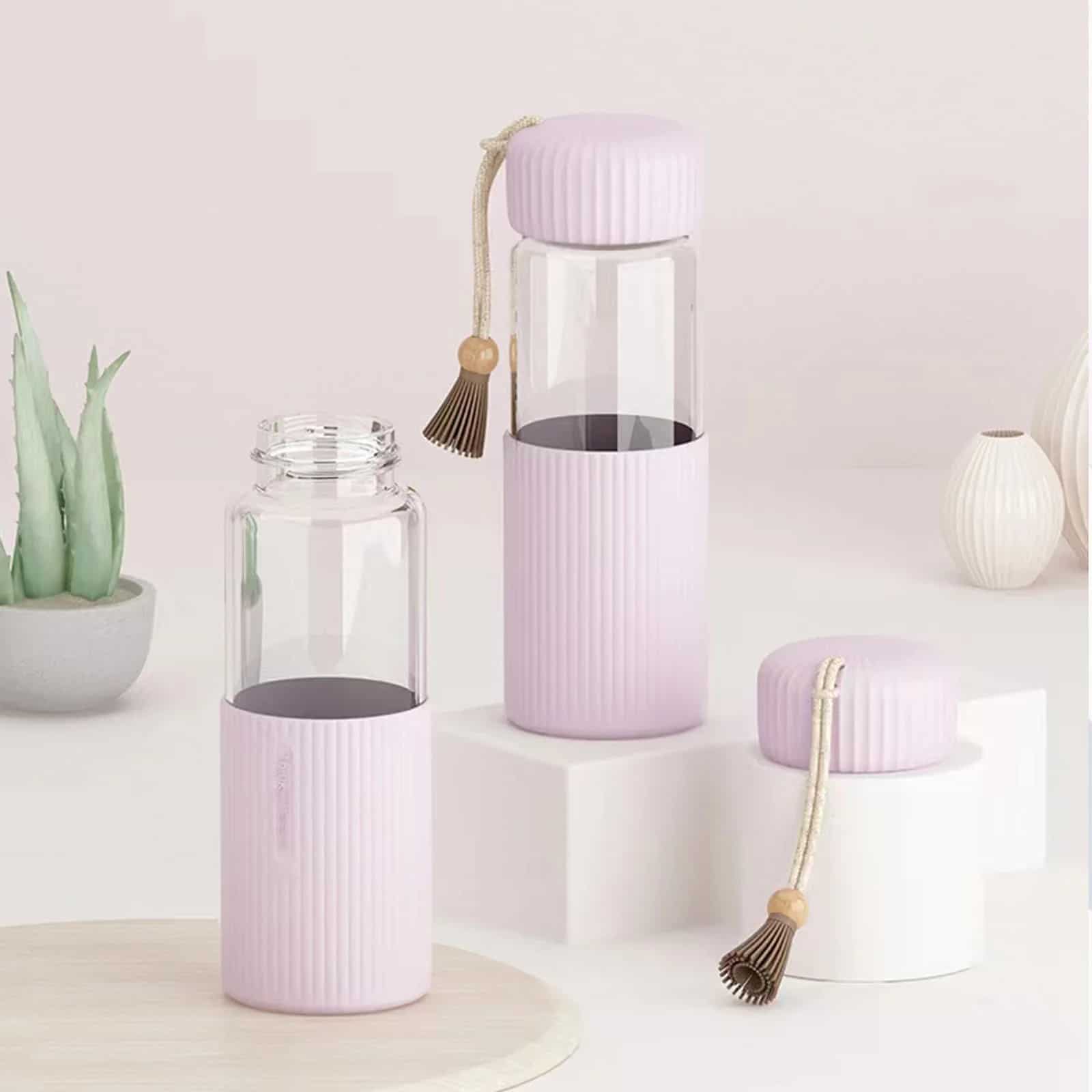 Au-delà de ses fonctions de base, cette gourde sert également de couvert de table décoratif. Son design moderne agrémenté d’un joli pompon rose la rend idéale pour embellir une table ou décorer un bureau. Elle symbolise un mode de vie sain et esthétique, faisant d’elle un choix privilégié pour ceux qui cherchent à allier utilité et beauté.