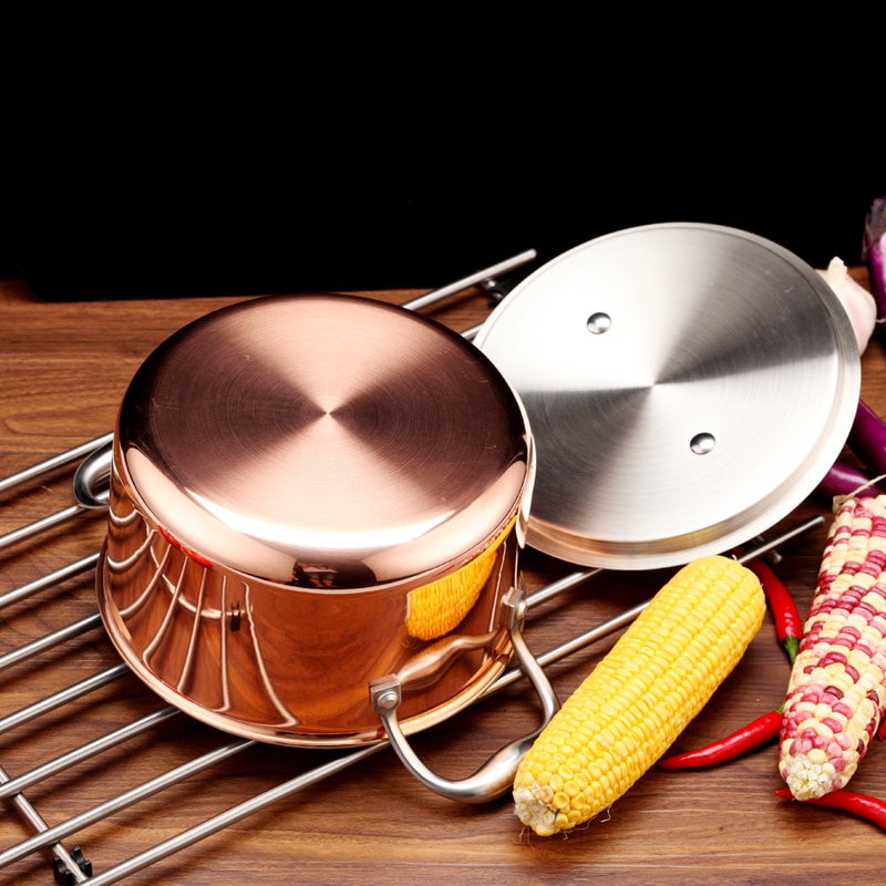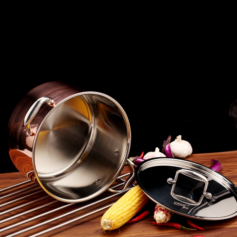 Notre cocotte en cuivre saura se faire remarquer dans votre cuisine. Elle rayonne avec sa couleur ambrée. Vous allez l’adorer ! Les ustensiles de cuisine en cuivre apportent une touche de vintage à votre cuisine. Laissez votre cocotte visible pour qu’elle se transforme en un véritable objet de décoration vintage. Le cuivre a traversé les époques. Si vous cuisinez aujourd’hui un délicieux plat aromatisé avec goût, vos ancêtres ont peut-être utilisé une cocotte similaire pour des recettes tout autres ! Laissez votre imagination vous guider et apprenez à cuisiner des grands volumes !